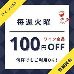 12月から、火曜はワインがメニュー全品100円引きで飲めちゃいます!!何種でも何杯でも一品100円引き!!