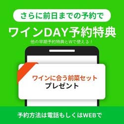 さらにさらに前日までにワインDAYのご予約いただければ、”ワインに合う前菜”をなん...